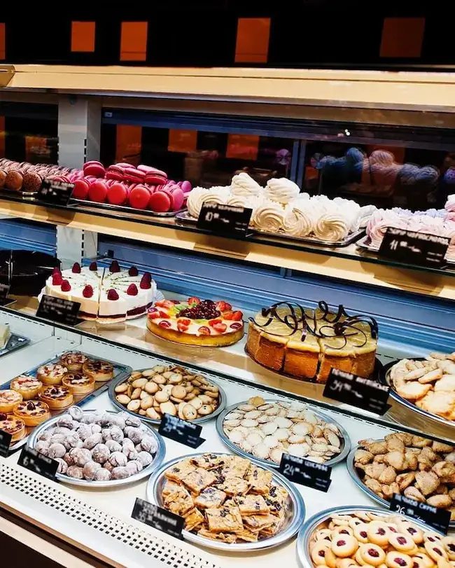 Rich chocolate mousse over a brownie base, mirror glazed.